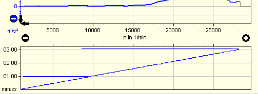 Example: The speed diagram shows a speed up measurement with a short drive interruption at 9600 1/min after 1 hour.